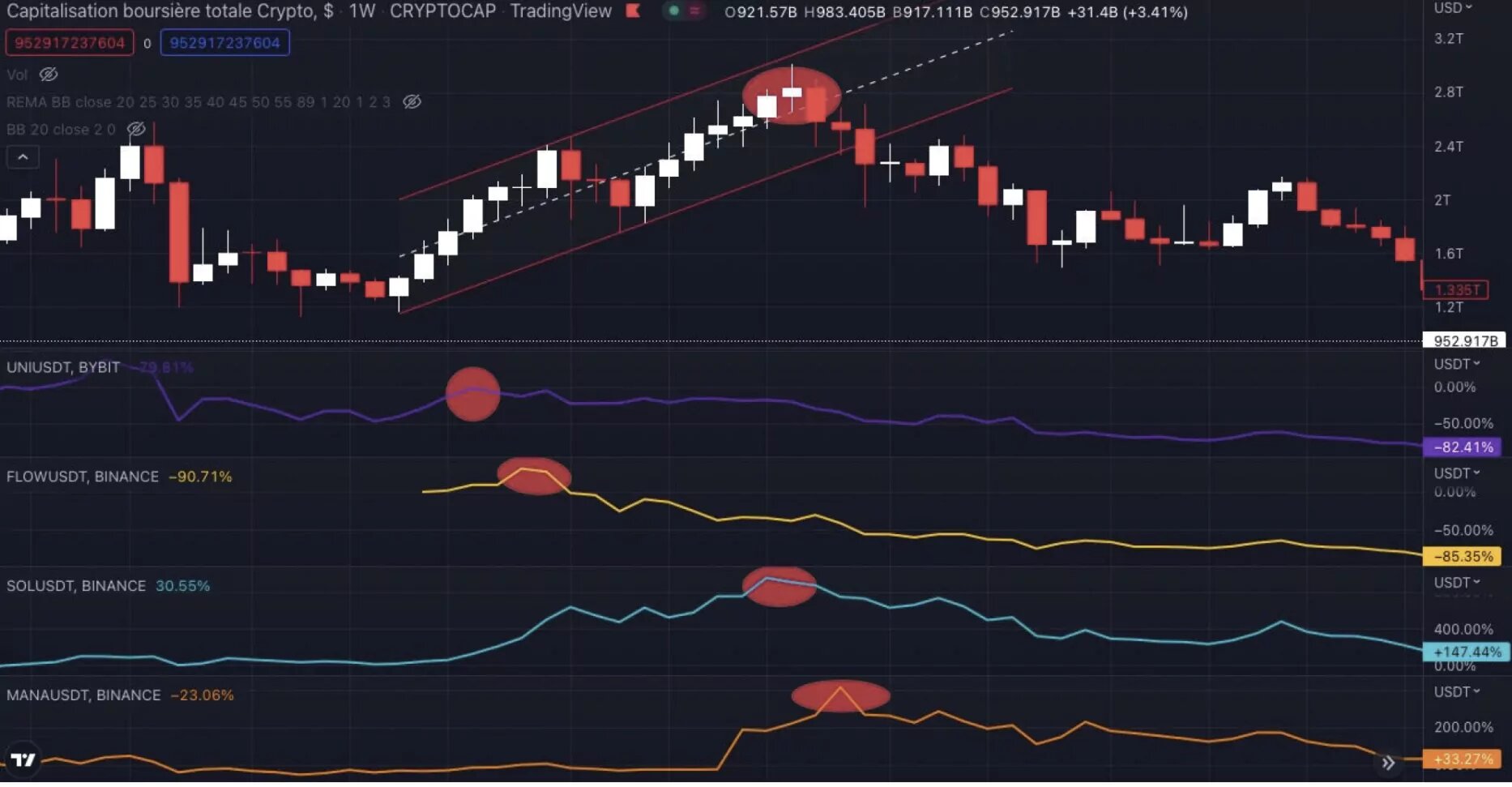 También entra en juego el aspecto del análisis técnico/de mercado. De hecho, todo el método consiste en abandonar la narrativa en el momento adecuado y saber cuándo llega a su punto de burbuja para poder trasladar tu capital a una narrativa que no haya estallado.