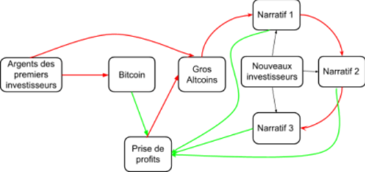 Este fenómeno se acelera cada vez más a medida que avanza el BullRun gracias a la euforia colectiva, llegan muchos nuevos inversores por el camino lo que hace que estalle una nueva narrativa y luego otra y …