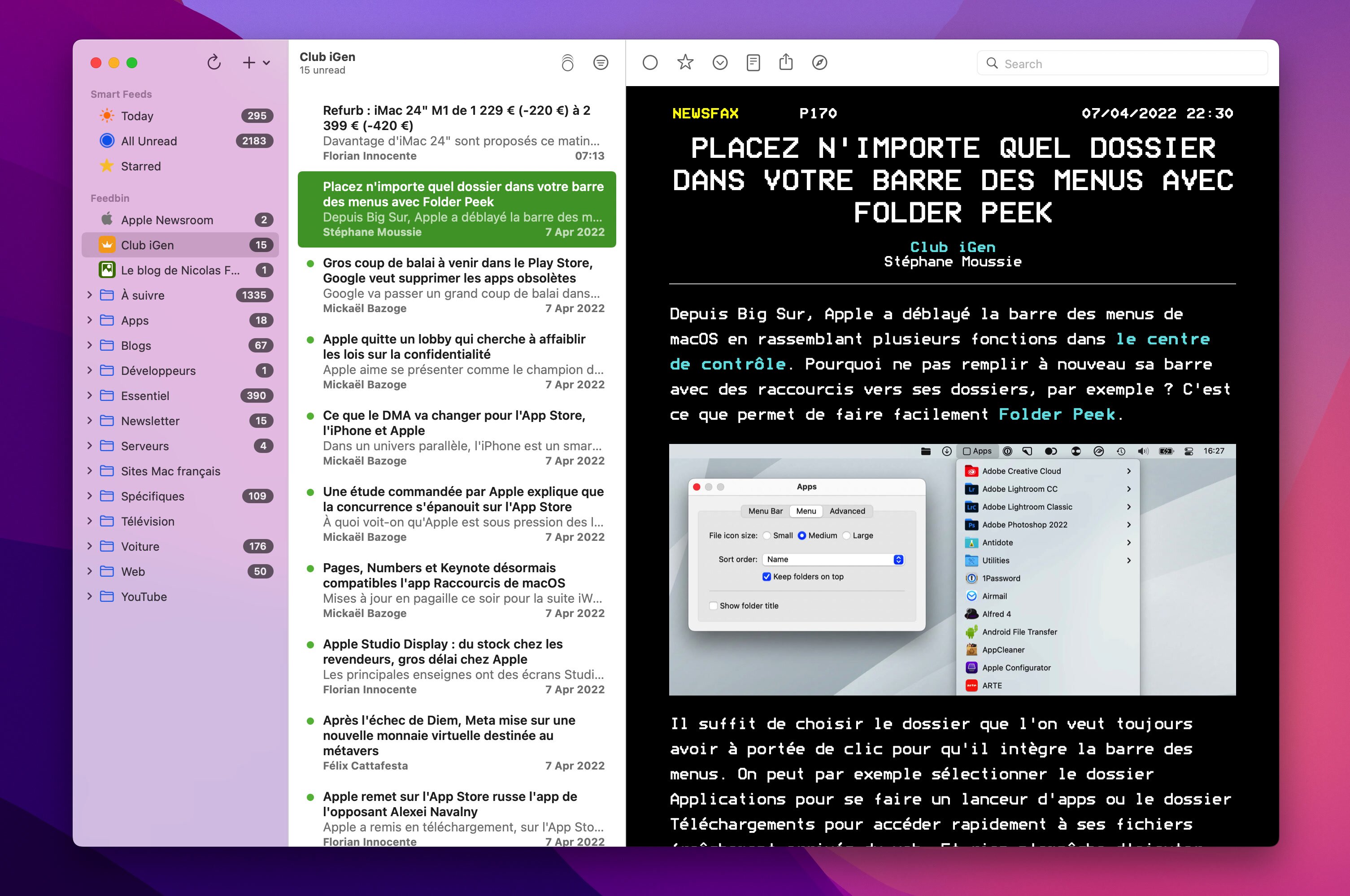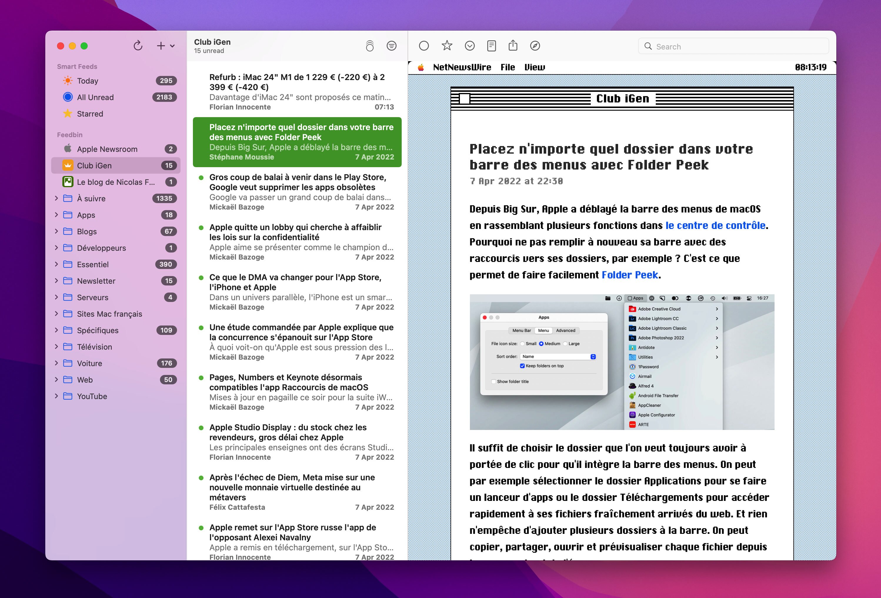 Por el momento, estos temas están reservados para NetNewsWire para macOS y se requiere al menos la versión 6.1. Uno puede imaginar que la versión de iOS también se beneficiará a largo plazo, pero este no es el caso en la actualidad. De cualquier manera, este cliente RSS es gratuito y de código abierto. No está traducido al francés y requiere al menos macOS 10.15 o iOS 13.
